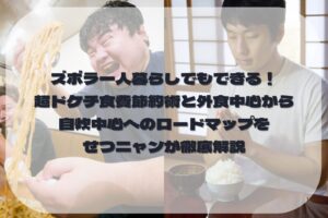 フッ、そこがお前のダルさの真骨頂にゃ。いいかダル男、節約を意識するなら自炊は必須だ。しかし、お前が疲れてコンビニに走る未来も読めてるにゃ。